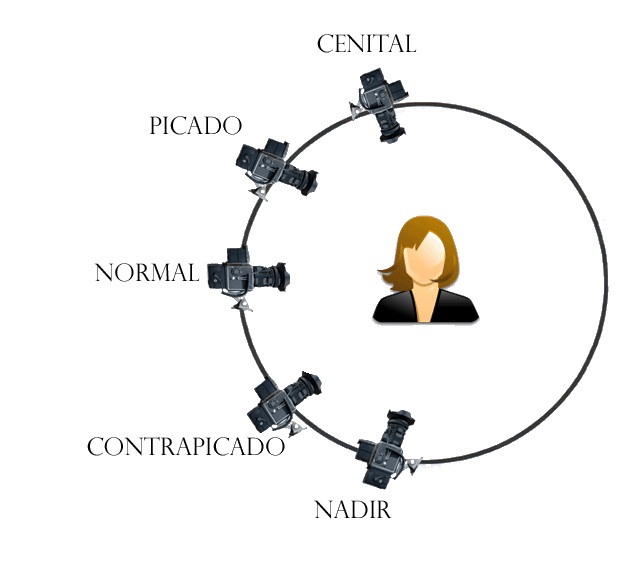 En cuanto a la angulación de cámara, indica el punto de vista de ésta. Se trata de la diferencia entre el nivel de la toma y el objeto filmado. Si bien hay muchos diferentes, los principales son cinco. Para ilustrar mejor los tipos de ángulos, recomendamos la visualización del clip que ya comentábamos en el punto 0402 Tipos de planos:
