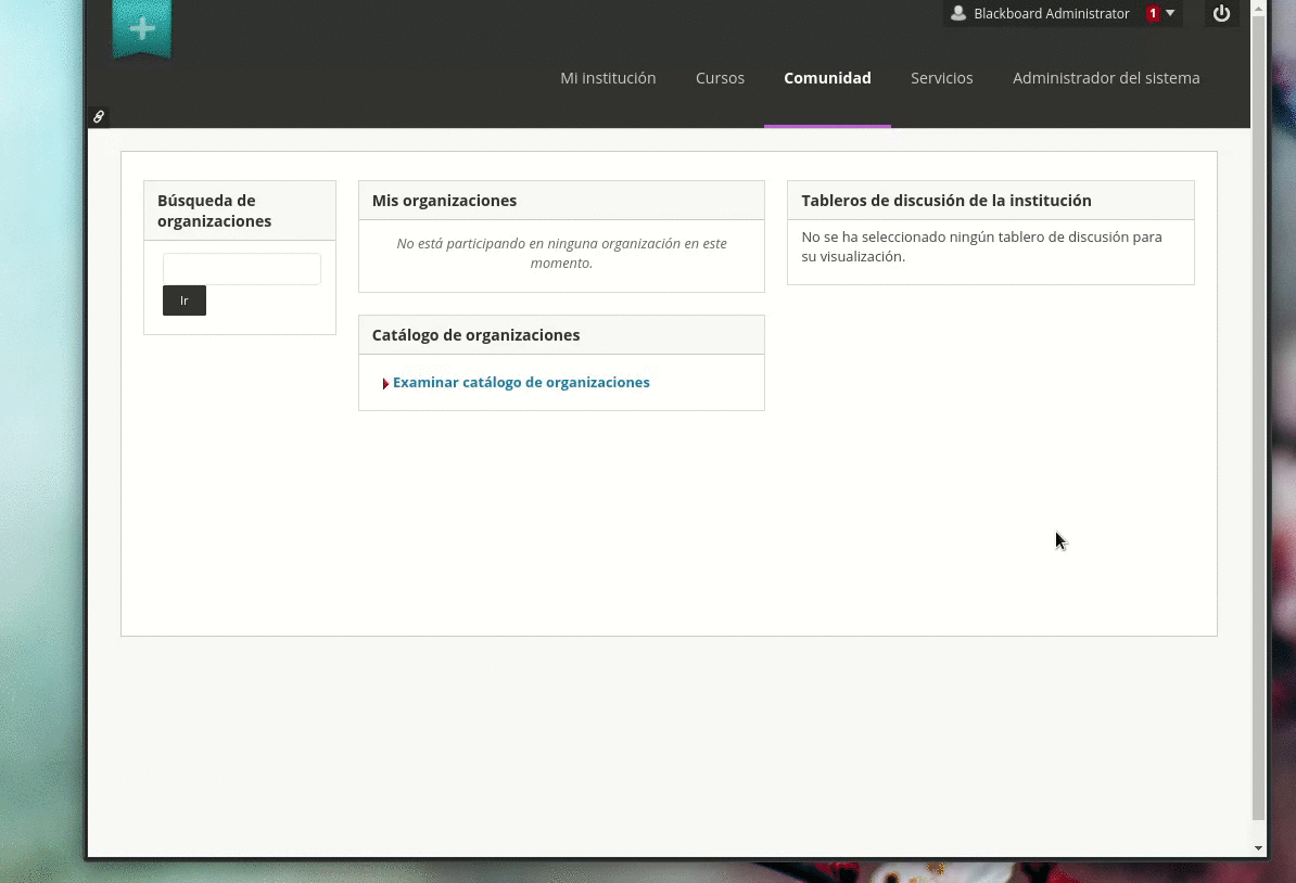 La interfaz de Learn se compone de una zona superior que permanece fija y desde donde se accede tanto a la navegación global como a las distintas pestañas, y una zona inferior donde se cargará el contenido de estas pestañas.