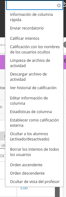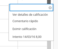 Si pulsamos en la casilla de la puntuación (o de la marca de "completado") en vez de la cabecera de la columna, veremos otras opciones distintas: